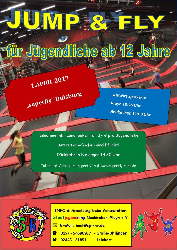 Der SJR fährt mit Jugendlichen zur größten Trampolinanlage in der Region. Insgesamt 90 Minuten Zeit haben die Teilnehmer um in der knapp 3.000m² großen Sprunglandschaft in Duisburg zu erkunden.