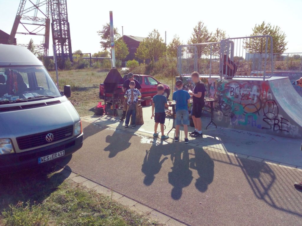 Am Weltkindertag hat der Stadtjugendring Neukirchen-Vluyn zusammen mit Kindern und Jugendlichen neue Sitzmöbel aus Europaletten für die Skateranlage auf dem ehemaligen Zechengelände Niederberg gebaut. Eine Sitzbank wurde nun entwendet.