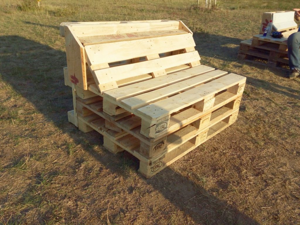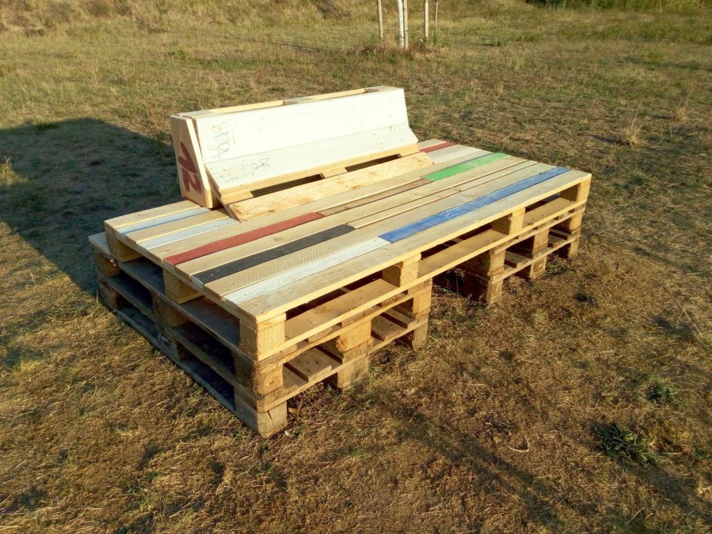 Neu gebautes Palettenmöbel von Skateranlage entwendet